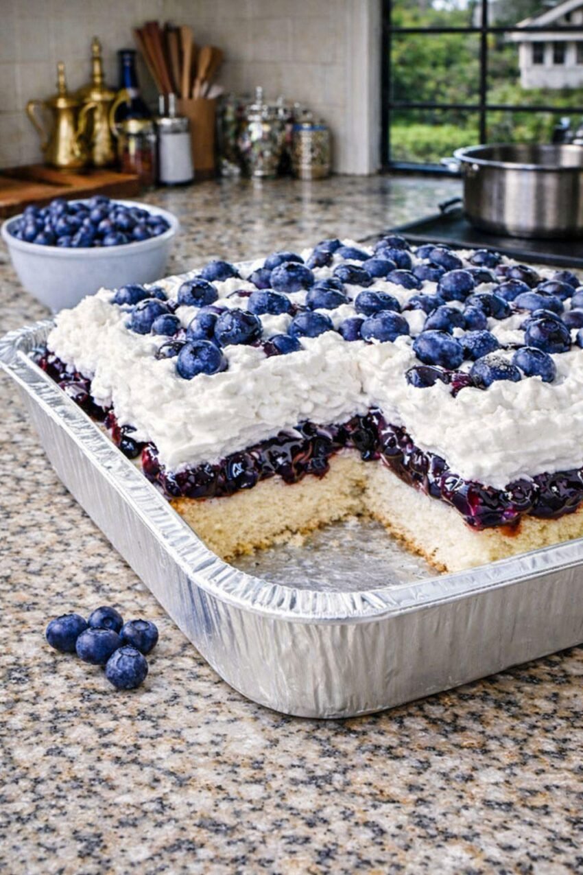 Here’s a detailed, step-by-step Blueberry Cloud Cake recipe — light, airy, and bursting with fresh blueberry flavor. This cake gets its “cloud” texture from whipped egg whites and a soft whipped cream topping.