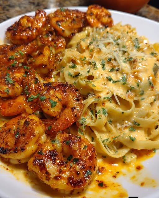 - Plate the creamy linguine, top with Cajun garlic butter shrimp.
