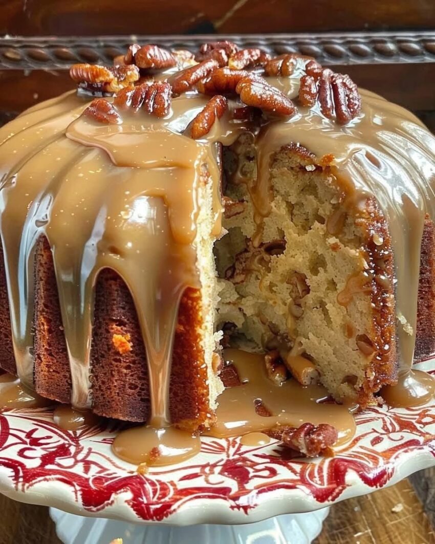 Here’s a detailed recipe for Caramel Brown Sugar Pound Cake with Caramelized Candied Pecans with step-by-step directions: