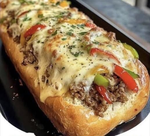 Cheesesteak-Stuffed Garlic Bread Loaf that’s loaded with tender beef, sautéed peppers and onions, and gooey cheese—all wrapped in a crispy, garlicky bread. I’ll give you a detailed, step-by-step recipe.