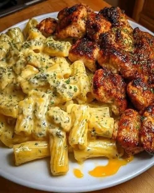 Here’s a detailed, restaurant-style Garlic Butter Chicken Rigatoni in Creamy Cajun Three-Cheese Sauce, written clearly and step by step.