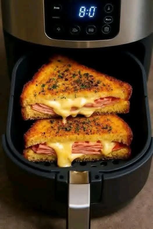 Here’s a simple, crispy, and delicious air fryer grilled ham and cheese recipe. 😋