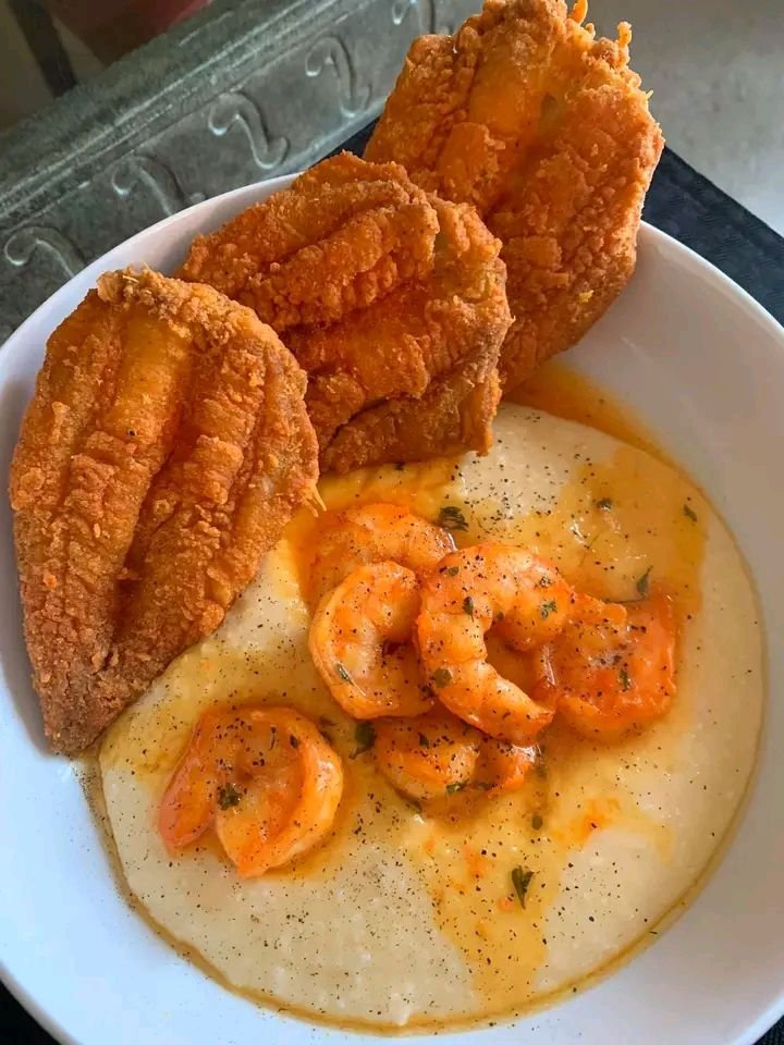 Here’s a full, restaurant-style recipe for Southern Fried Catfish with Cajun Shrimp & Cheesy Grits — crispy, creamy, smoky, and full of bold Southern flavor.